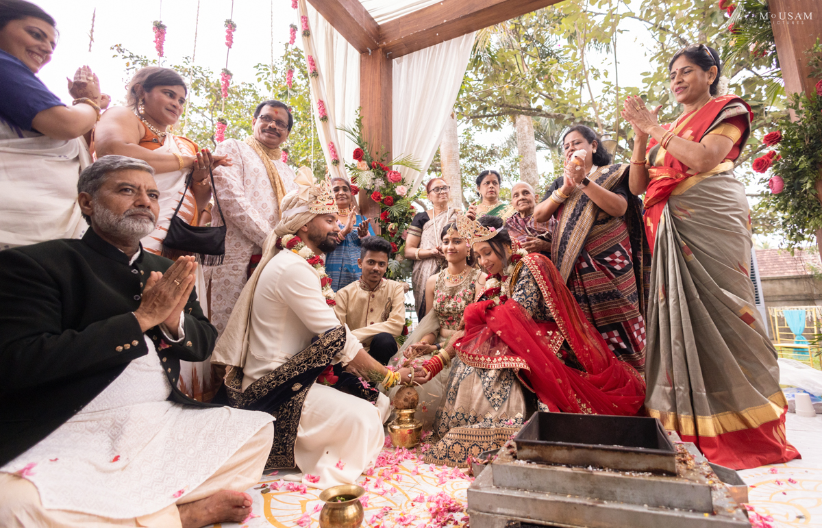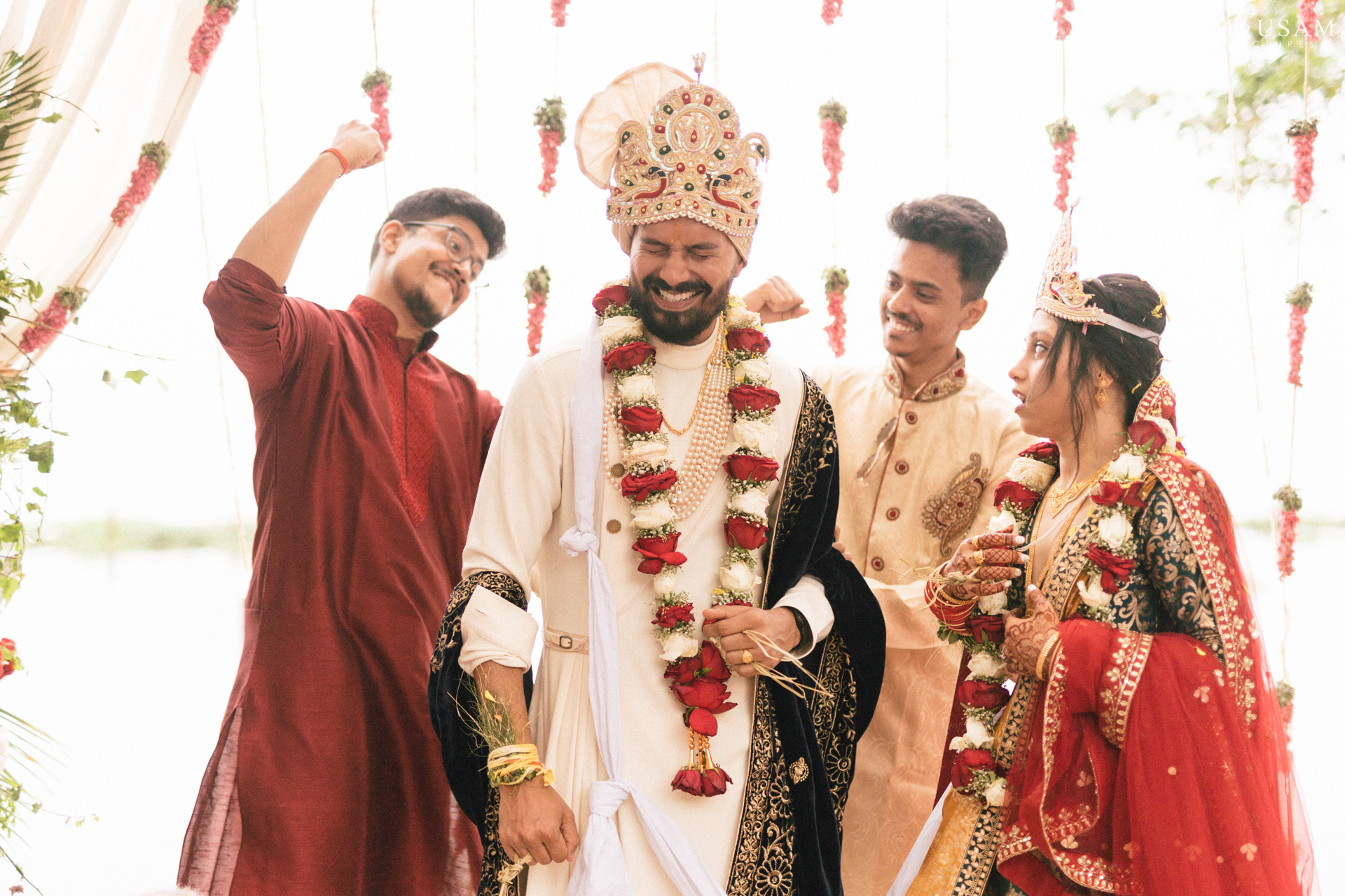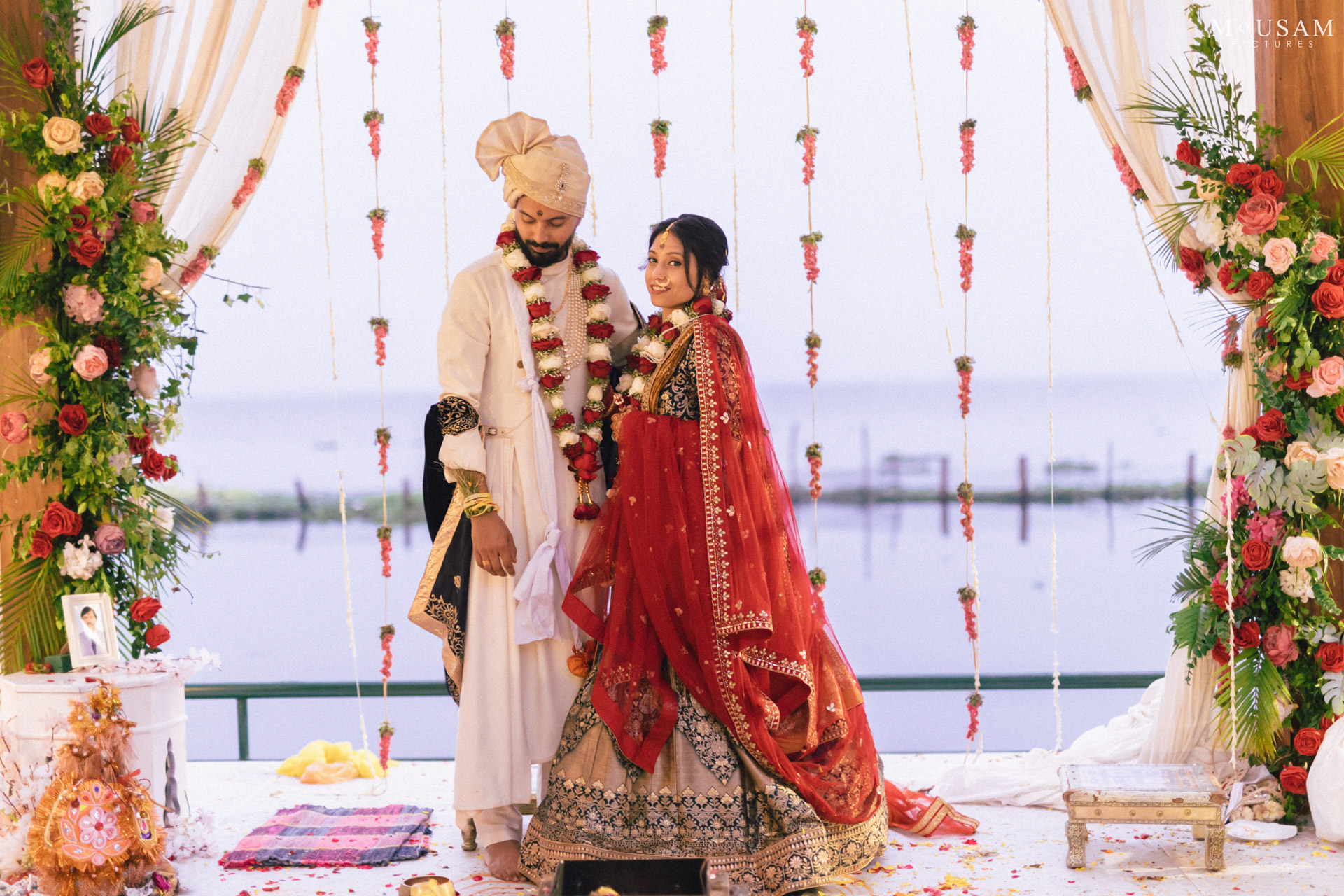 What makes their wedding truly exceptional is the fusion of not one, not two, but three different cultures. Preetesh and Shivani, hailing from diverse backgrounds, decided to tie the knot in the enchanting land of Kerala. The beauty of this wedding lies in the harmonious blend of traditions, rituals, and cuisines from their respective heritages.