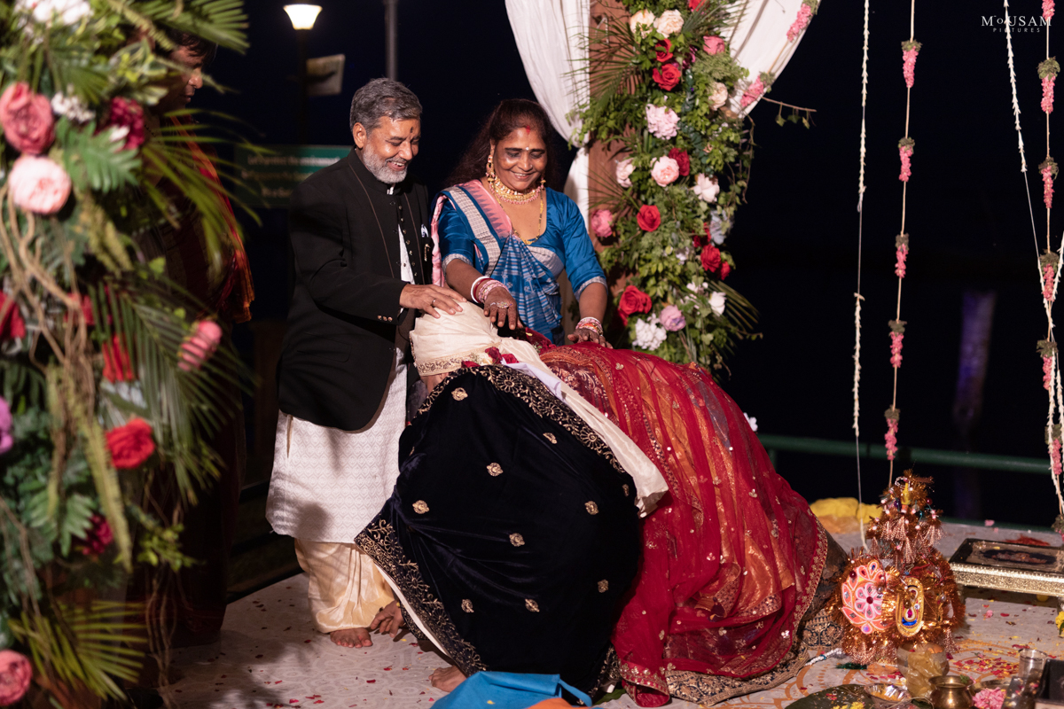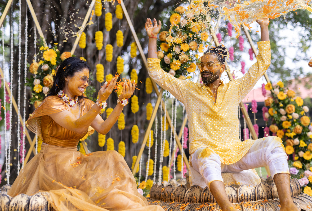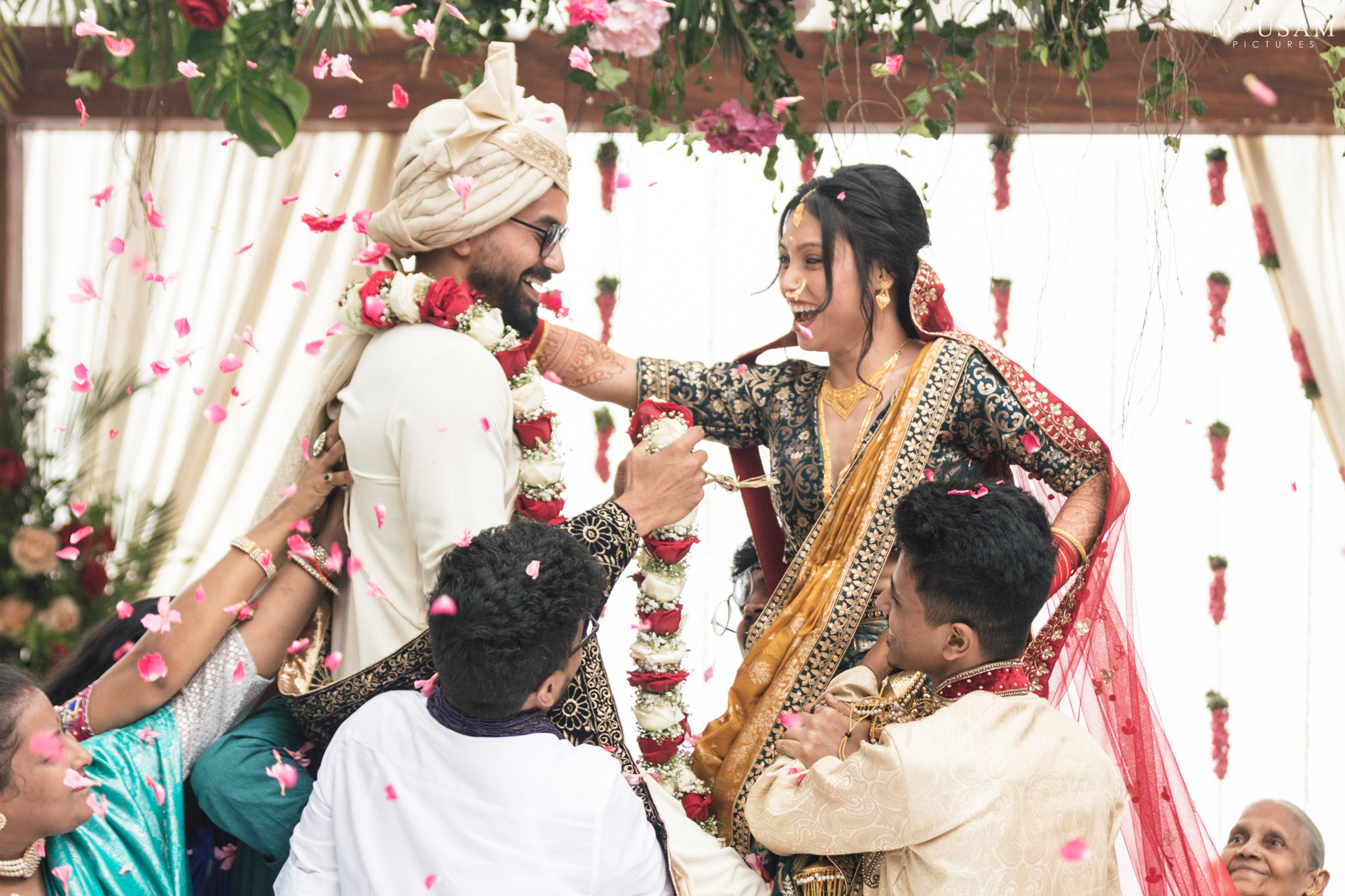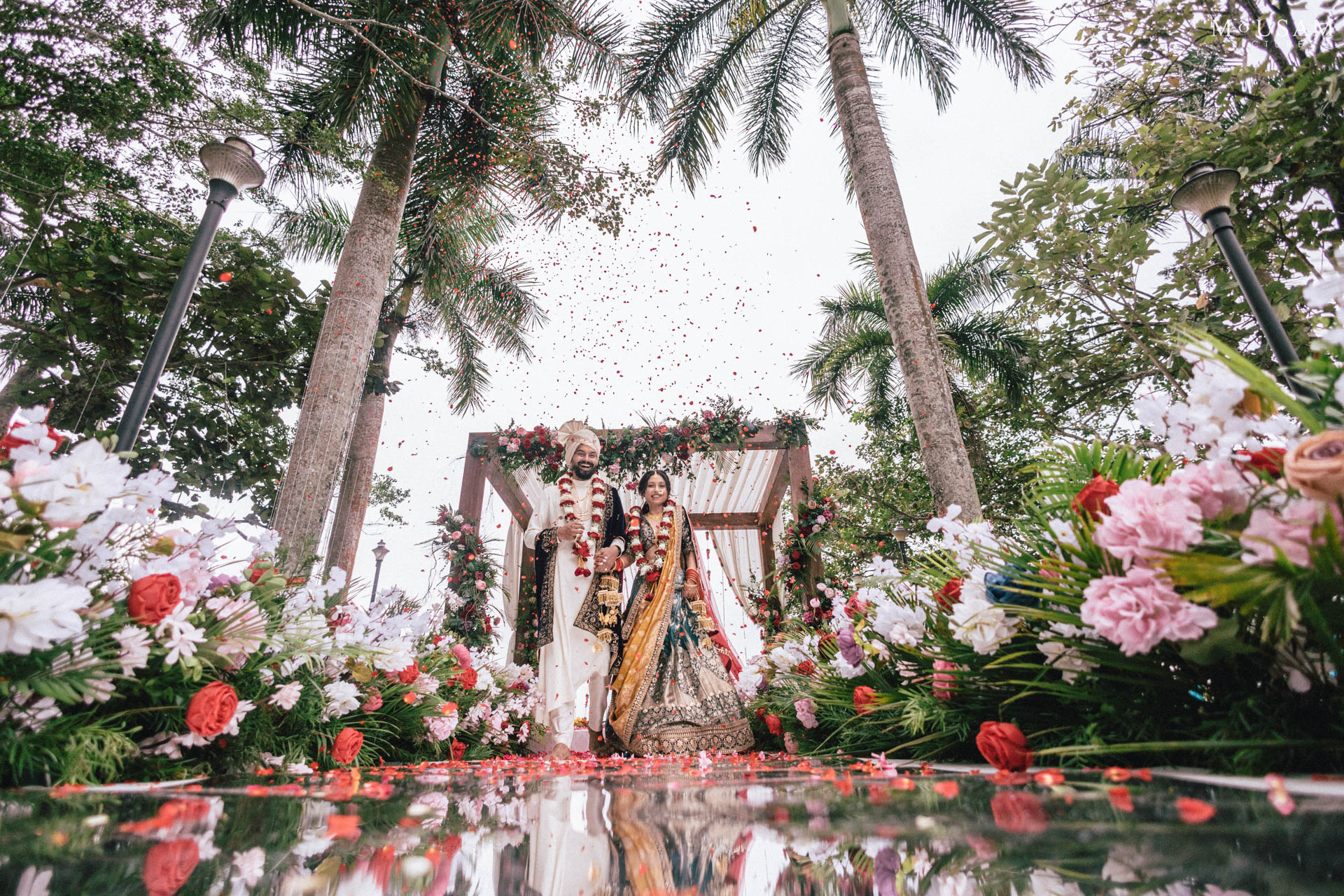 What makes their wedding truly exceptional is the fusion of not one, not two, but three different cultures. Preetesh and Shivani, hailing from diverse backgrounds, decided to tie the knot in the enchanting land of Kerala. The beauty of this wedding lies in the harmonious blend of traditions, rituals, and cuisines from their respective heritages.